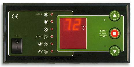 Der Regler ist ein Gerät, das für die Einstellung der Kesseltemperatur bestimmt ist. Die Temperatur wird auf dem durch den Benutzer bestimmten Niveau durch Steuerung der Drehzahl des Drucklüfters aufrechterhalten. Der Regler misst ständig die Wassertemperatur im Kessel, zeigt sie im Display an und steuert entsprechend den Betrieb der Umlaufpumpe der Zentralheizung.